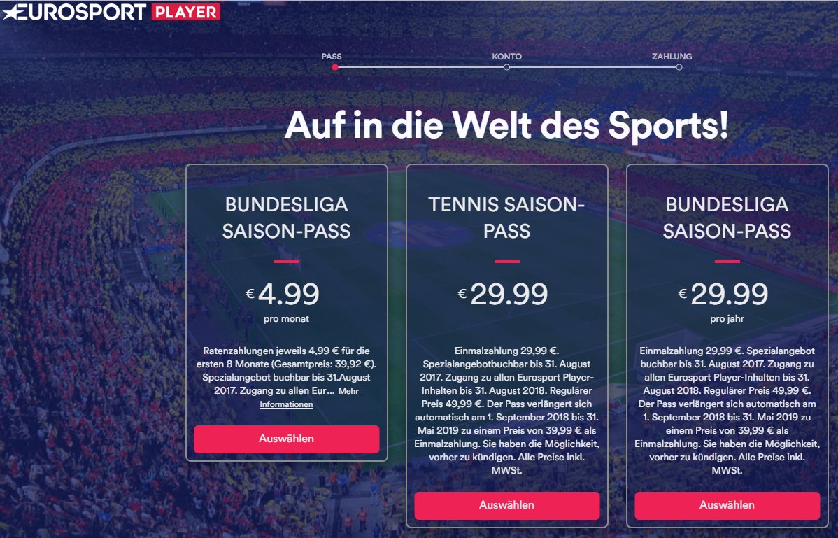 Nehm ich jetzt nen Tennis oder nen Bundesliga-Pass um für den gleichen Preis das gleiche Angebot zu bekommen :/ der Trick wird sein: bei Bundesliga-Ausfall bekommen dann nur BULI-Kunden was erstattet XD